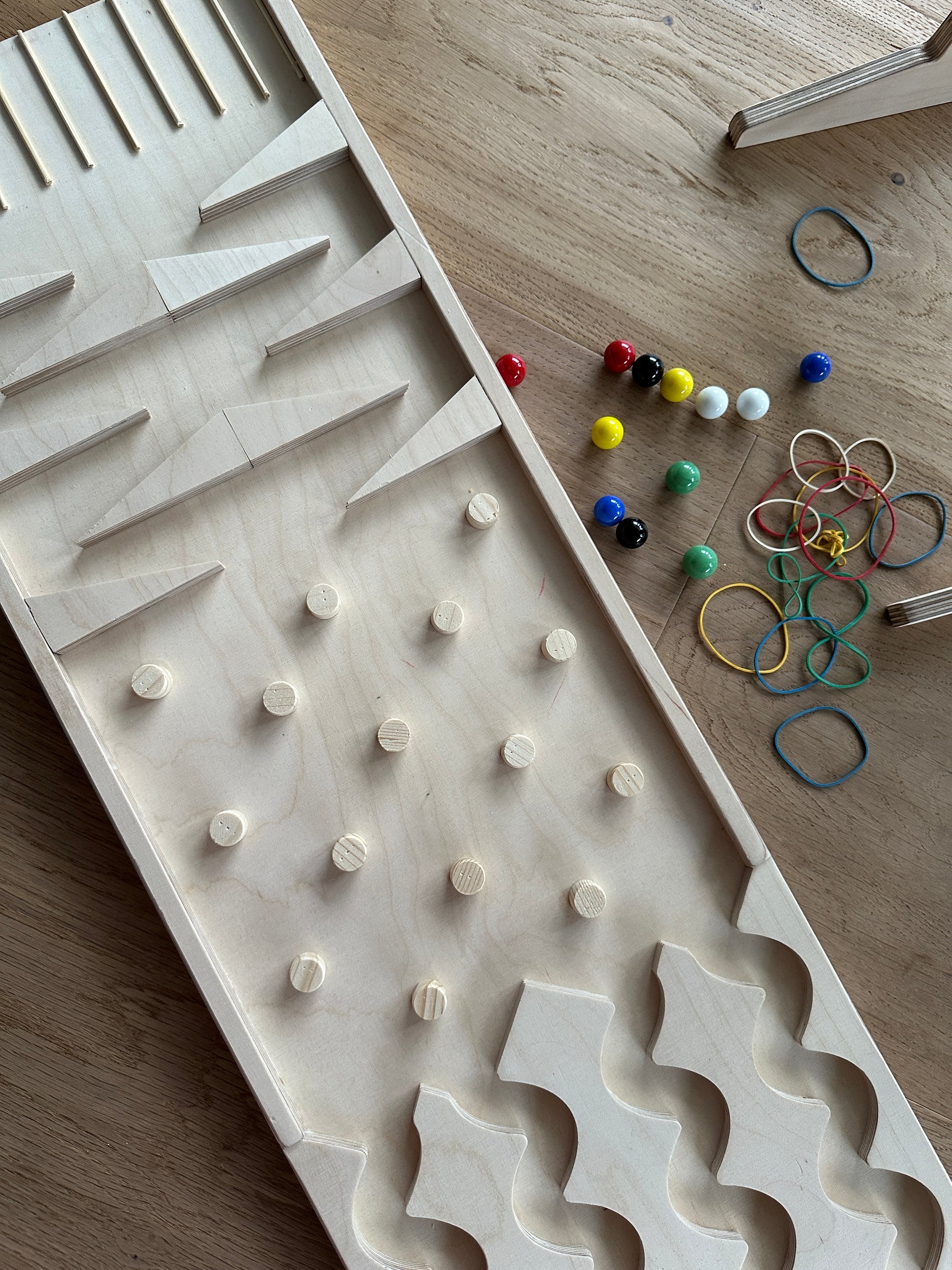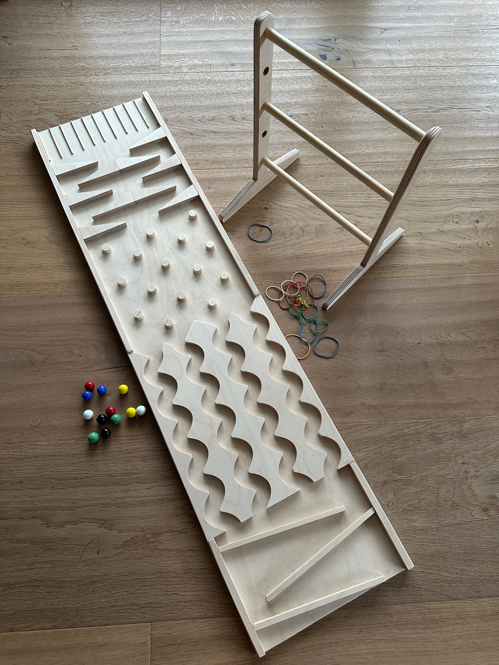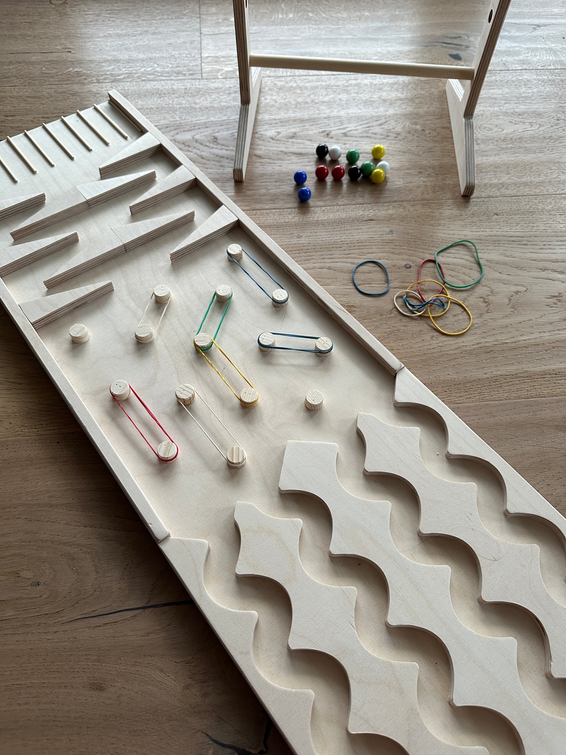 Diese große Spielplatte wurde entwickelt, um Kindern kreatives Bauen, Experimentieren und erstes physikalisches Verständnis spielerisch zu ermöglichen.