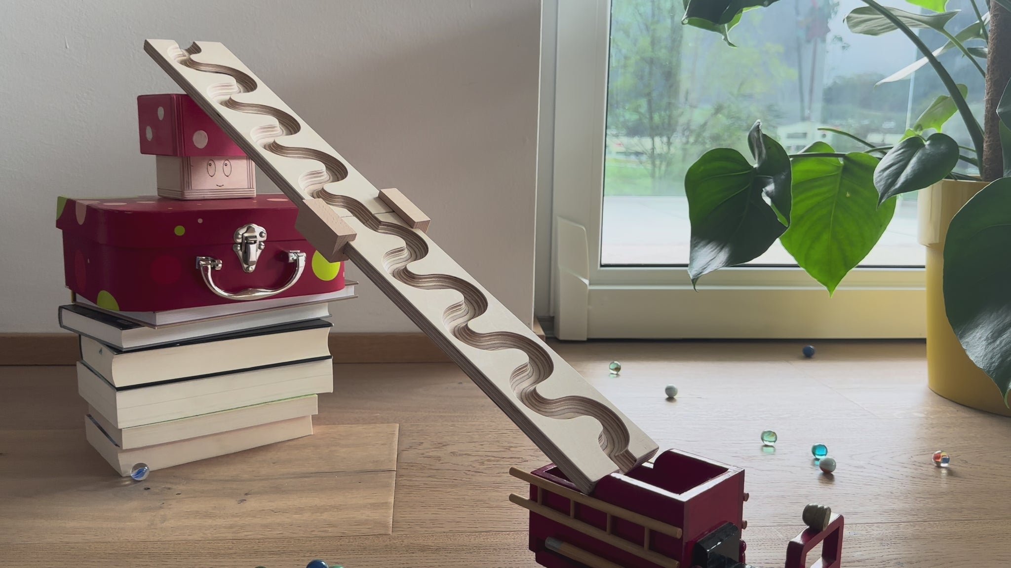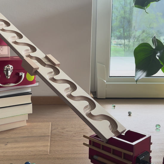 Unsere Murmelbahnen sind nicht nur toll zum Spielen, sondern auch umweltfreundlich. Wir setzen auf nachhaltiges Naturholz und jede Bahn ist ein Unikat mit einer individuellen Maserung.