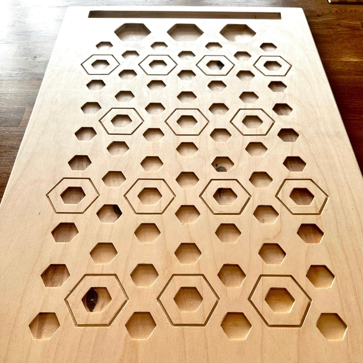 Unsere handgefertigte Bodenplatte aus hochwertigem Birken Sperrholz ist die ideale Ergänzung für Ihre Murmelbahn. Mit praktischen Maßen von 76 x 50 cm bietet sie ausreichend Platz für Ihre GraviTrax Bausteine und sorgt für eine stabile und sichere Konstruktion. Durch das einzigartige Design, das von mir entworfen wurde, gibt es extra Platz für Brücken und Steine, um Ihre Murmelbahn auf das nächste Level zu bringen. Verleihen Sie Ihrer Murmelbahn ein Upgrade mit unserer exklusiven Bodenplatte!