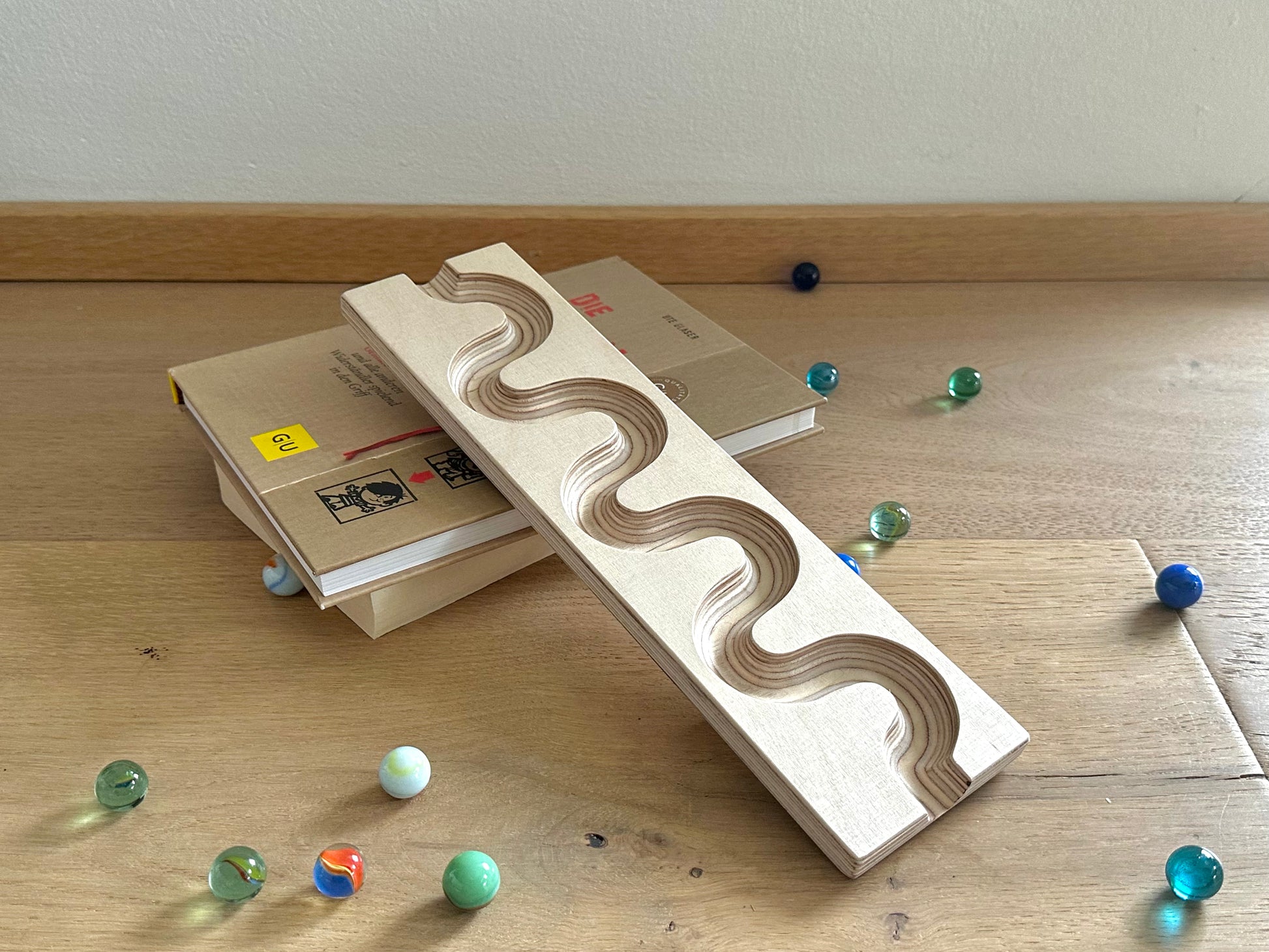 Unsere Murmelbahnen sind nicht nur toll zum Spielen, sondern auch umweltfreundlich. Wir setzen auf nachhaltiges Naturholz und jede Bahn ist ein Unikat mit einer individuellen Maserung.