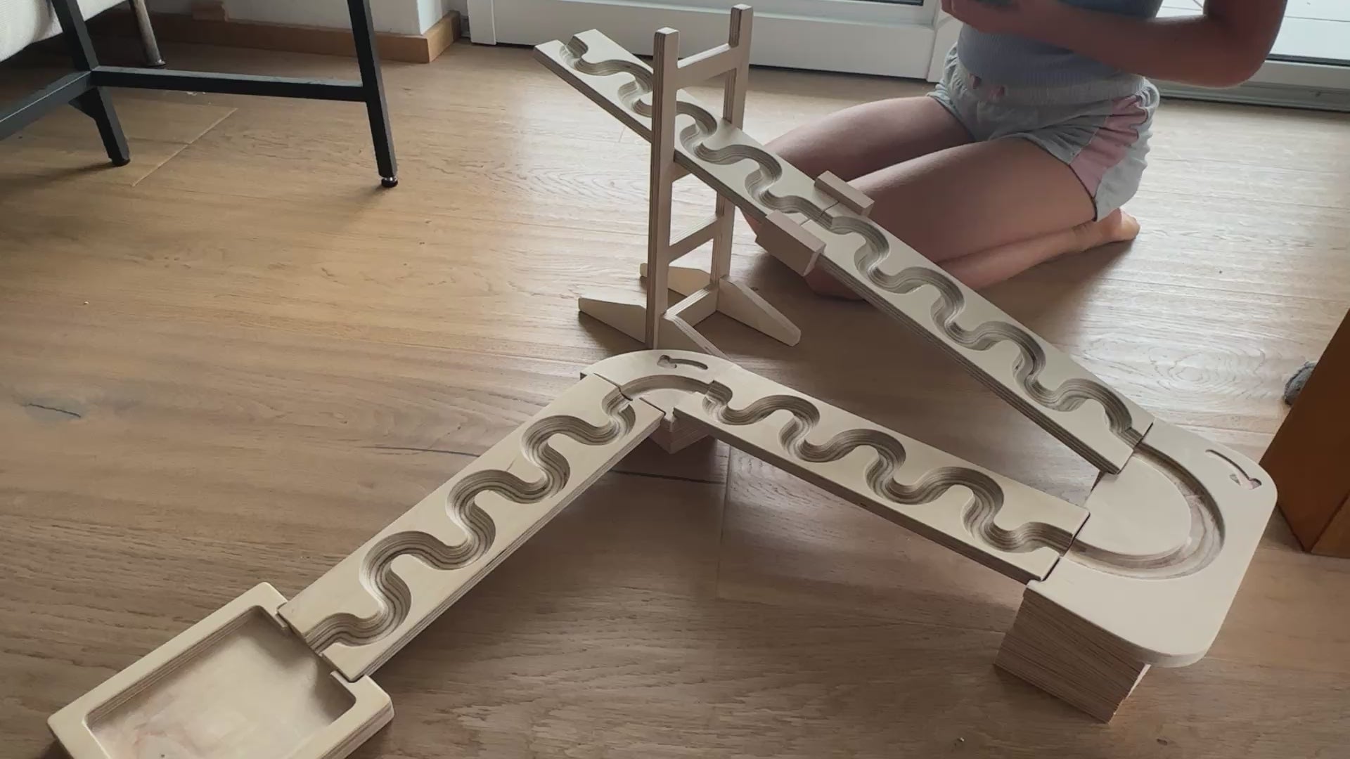 Das kleine Kurven-Set erweitert dein Basis-Set um spannende neue Bahnelemente. Mit Kurven und Schlängelplatten lassen sich abwechslungsreiche Strecken bauen, die jede Murmelfahrt zum Erlebnis machen.