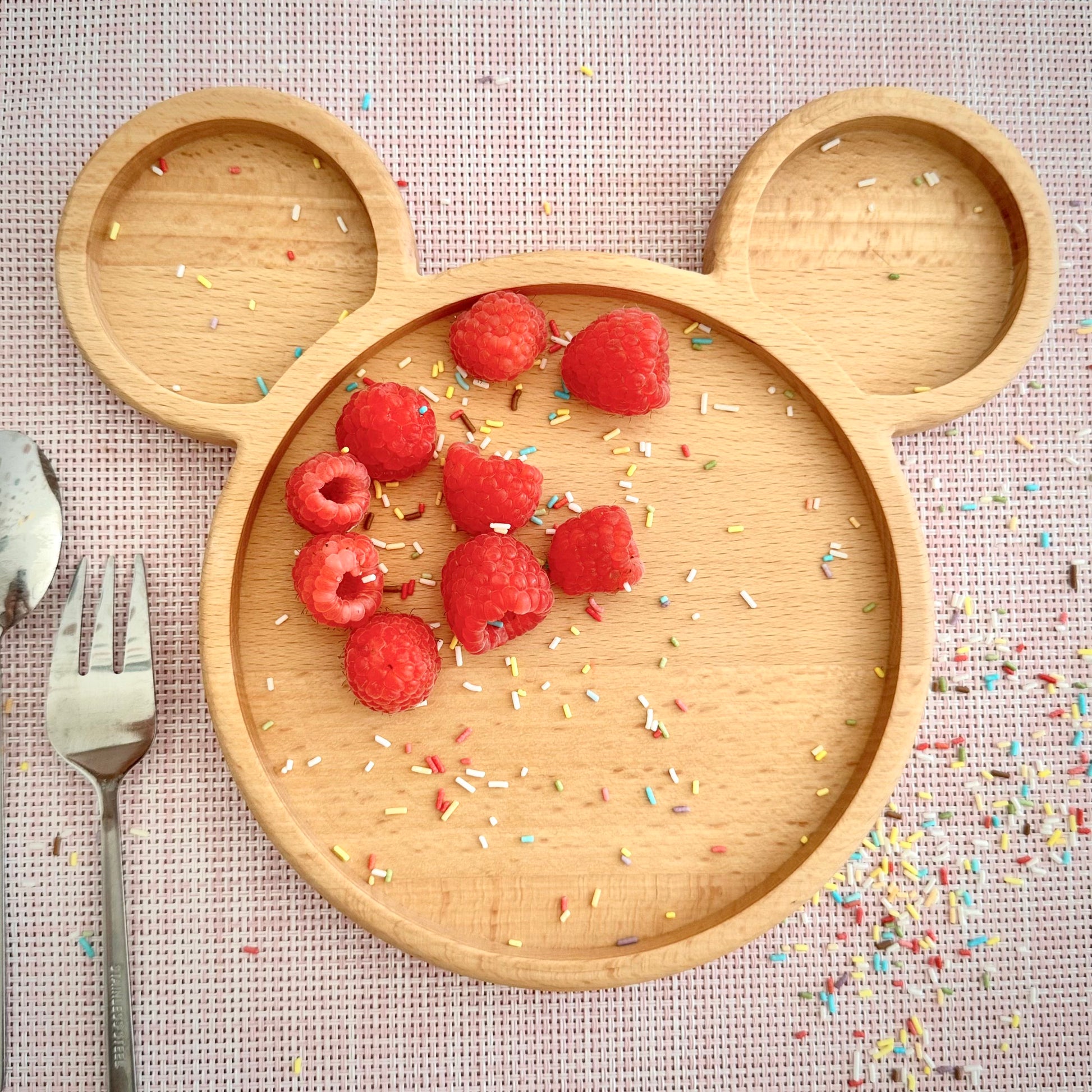 Aber das ist noch nicht alles. Dieser Teller ist nachhaltig, handgefertigt aus heimischem Buchenholz und mit lebensmittelechtem Öl behandelt. Damit könnt ihr sicher sein, dass eure kleinen Minnie-Fans gesund und umweltfreundlich speisen.