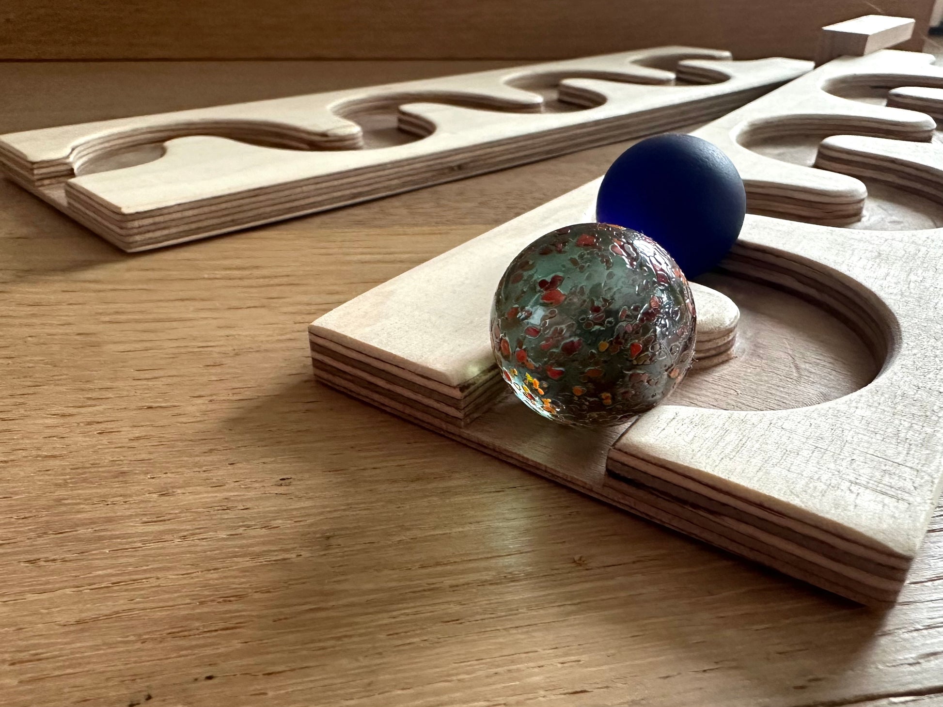 Meine handgefertigte, schlichte Murmelbahn ist die perfekte Ergänzung für das Spielzimmer.