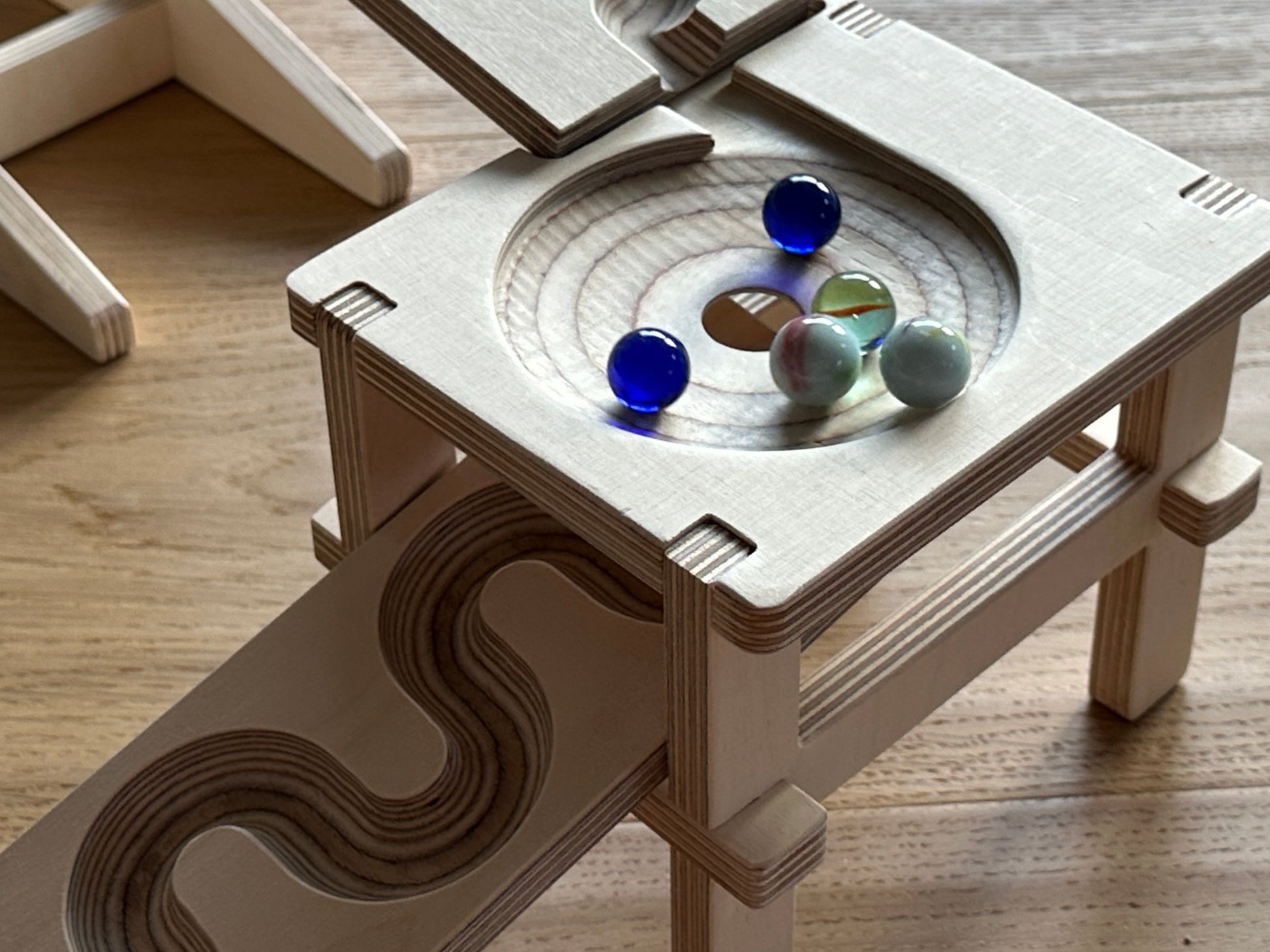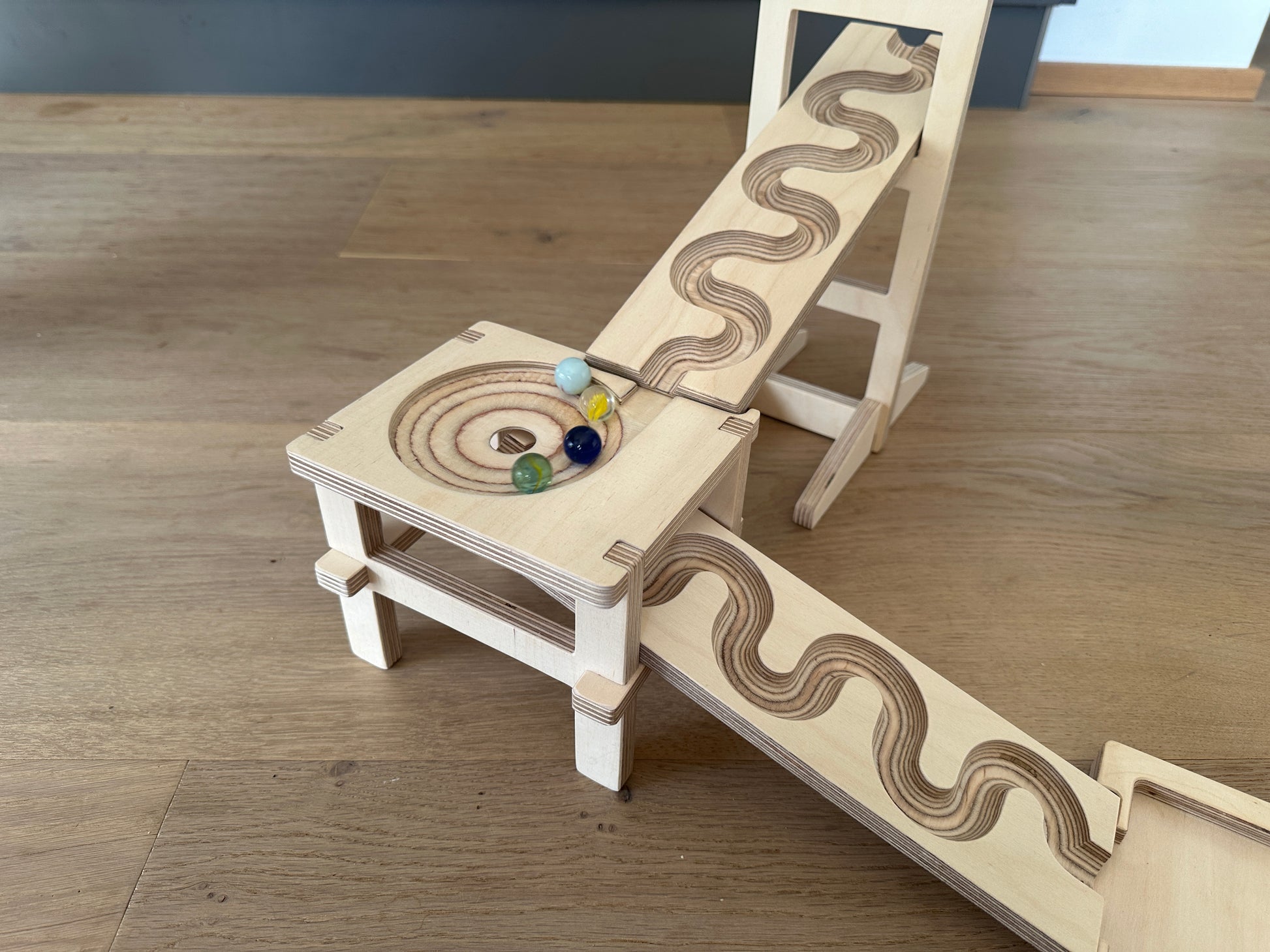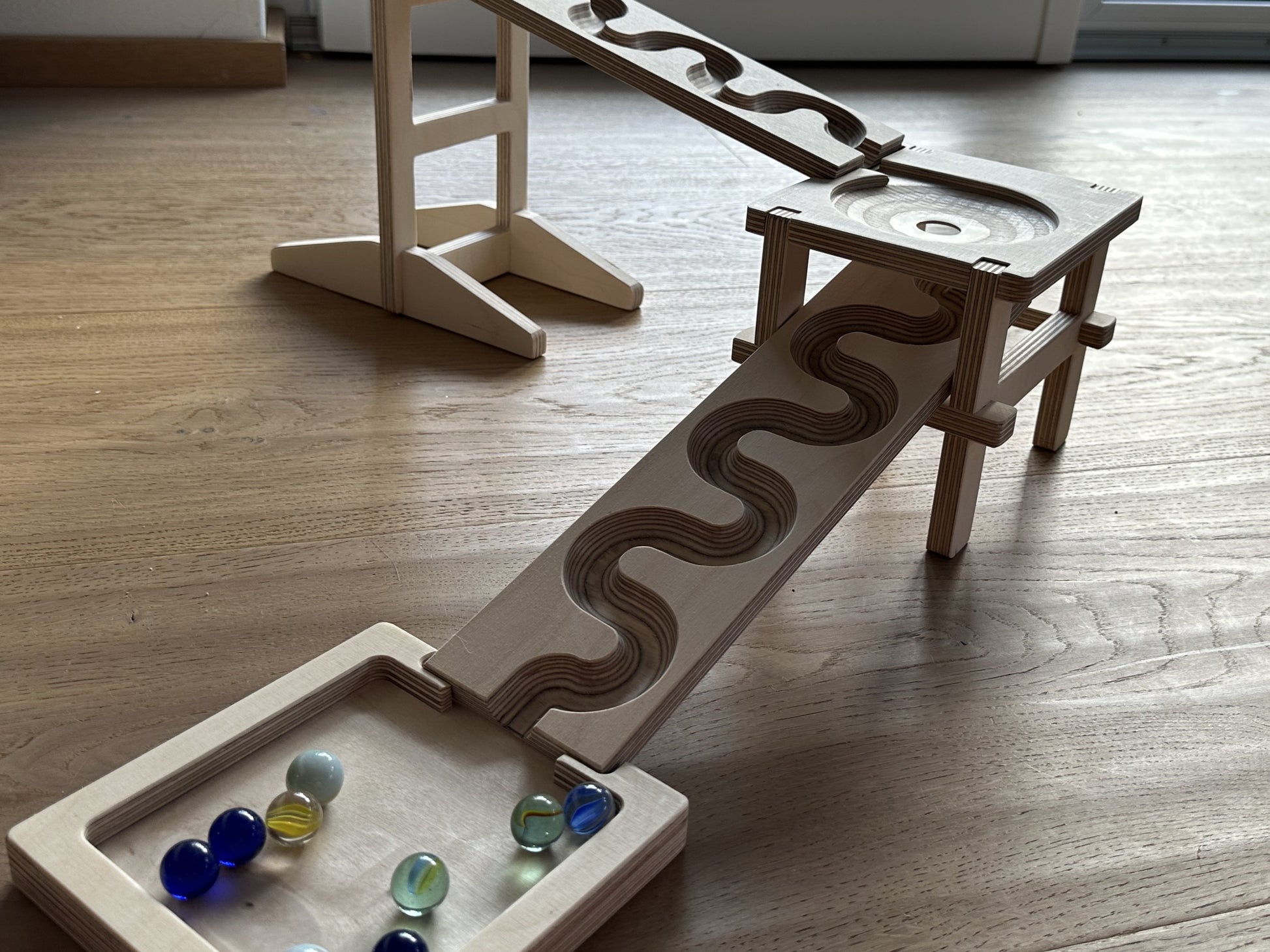 Unsere handgefertigten Murmelbahn-Set ist nicht nur ein Spaßfaktor, sondern auch eine stilvolle Ergänzung zu Ihrer Murmelbahn. Sie passen perfekt zum natürlichen Look unserer Bahnen und sind ein echter Hingucker in jedem Raum. Die Glasmurmeln sausen die verschiedenen Ebenen hinunter, bevor sie am Ende sicher in der Auffangschale landen. Ein fesselndes Spiel, das Kinder und Erwachsene gleichermaßen begeistert.